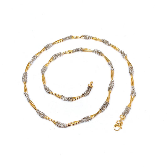 Two Tone Curved Rods & Cutting Beads Twist Necklace ( Two Line )