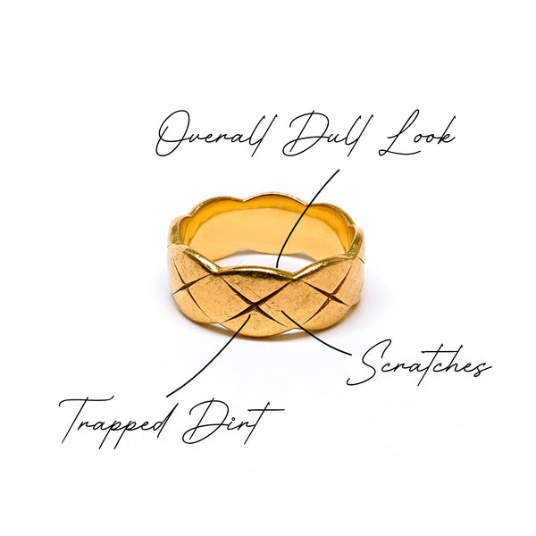 A 2-step restoration service for getting rid of stubborn dirt and scratches to make your gold jewellery shine with brilliant lustre again.