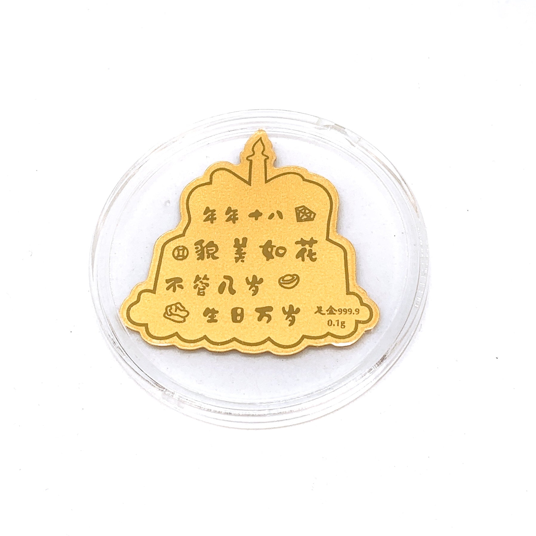 What better way to say Happy Birthday than with this pure gold sticker with a creative and humorous message on the back that reads" 年年十八,貌美如花,不管几岁,生日万岁!” to wish the recipient everlasting youth and beauty.