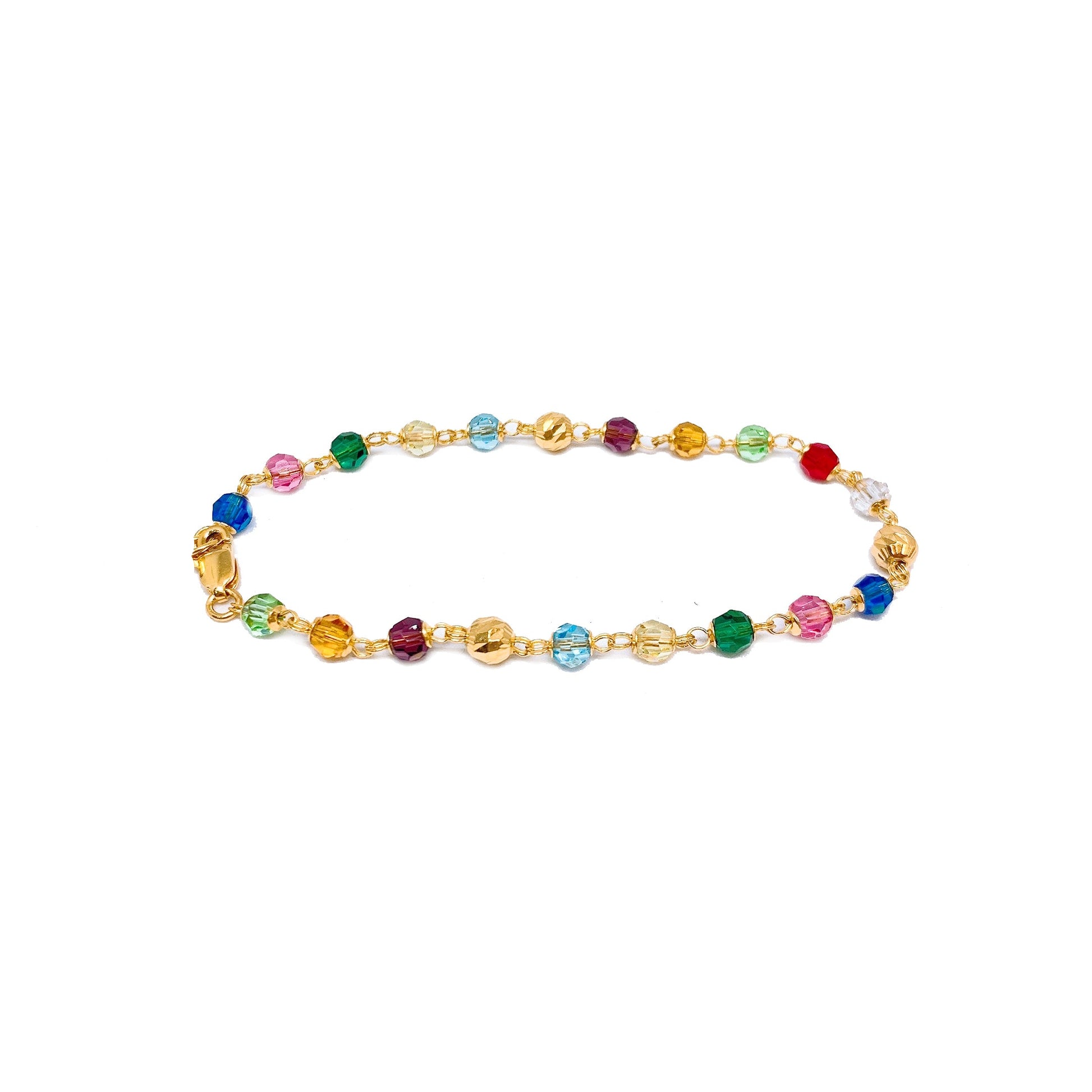 An eye-catching bracelet made of 22k gold featuring crystal beads in assorted colours.