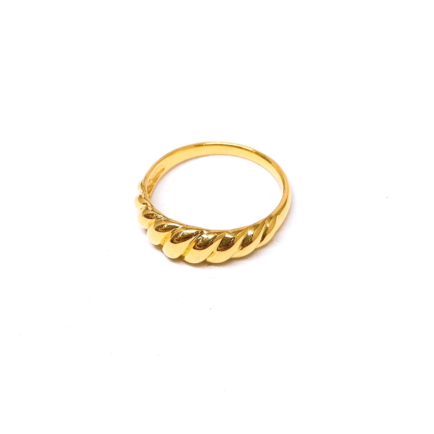 A modern and fashionable piece inspired by the croissant, made with 22k gold in polished finish. This timeless ring features a chunky twisted design and is perfect for any occasion!
