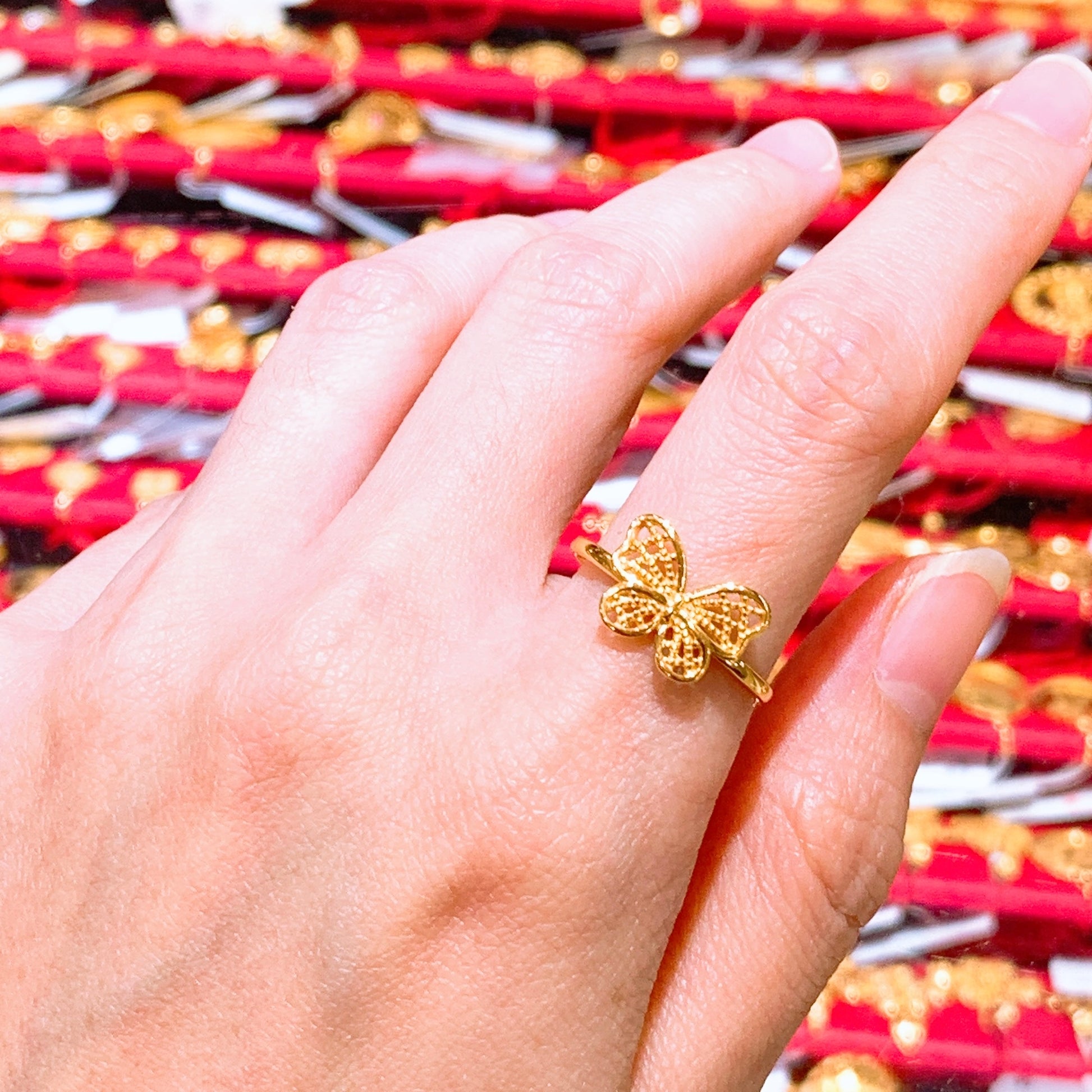 A dainty fine ring made in 22k gold featuring a sweet butterfly design with beaded mesh wings, perfect for the girly girls.