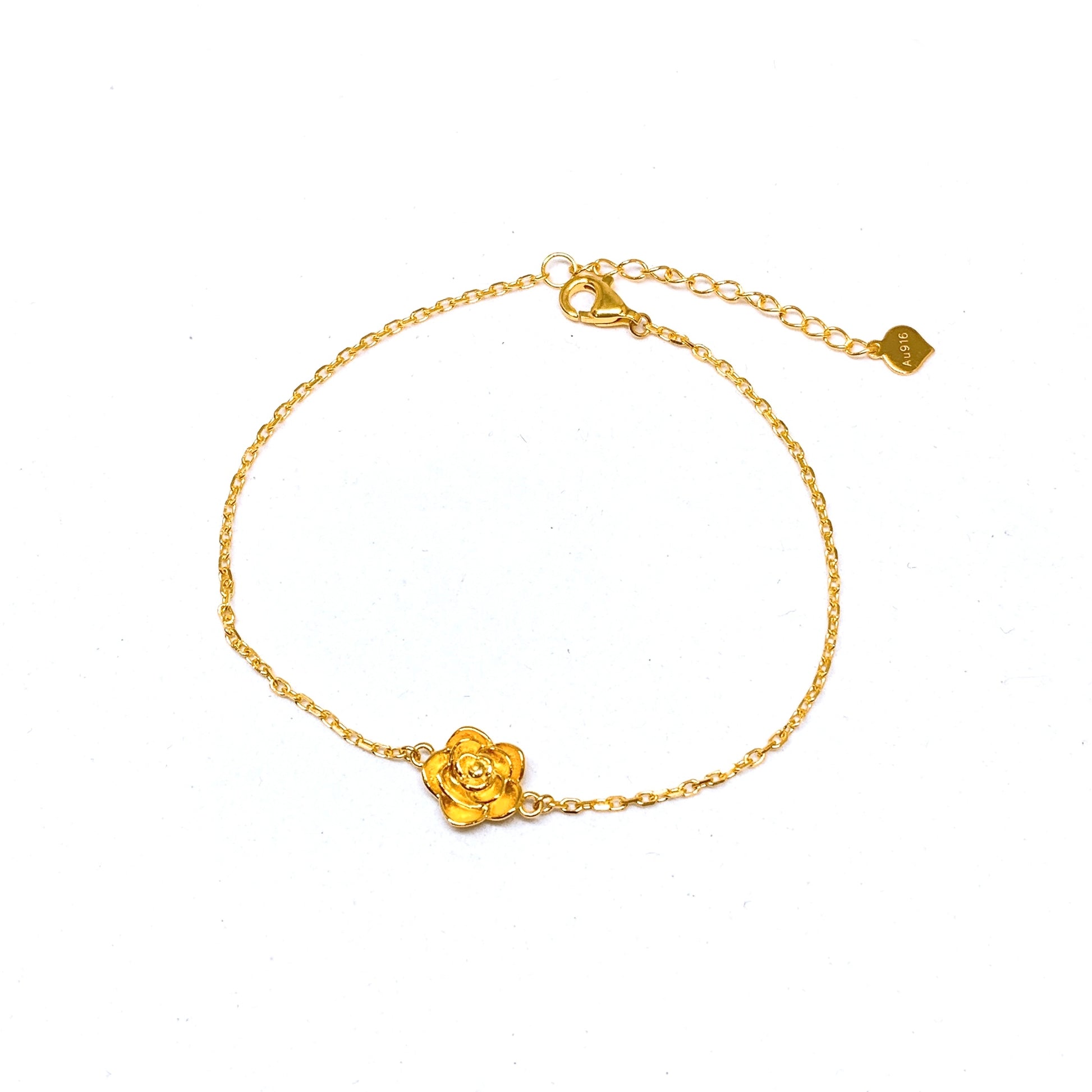 A dainty and fine cable chain with a rose charm and adjustable hoops for easy length adjustment secured with a lobster clasp. This pretty bracelet is lightweight and affordable, perfect for the girly girls!