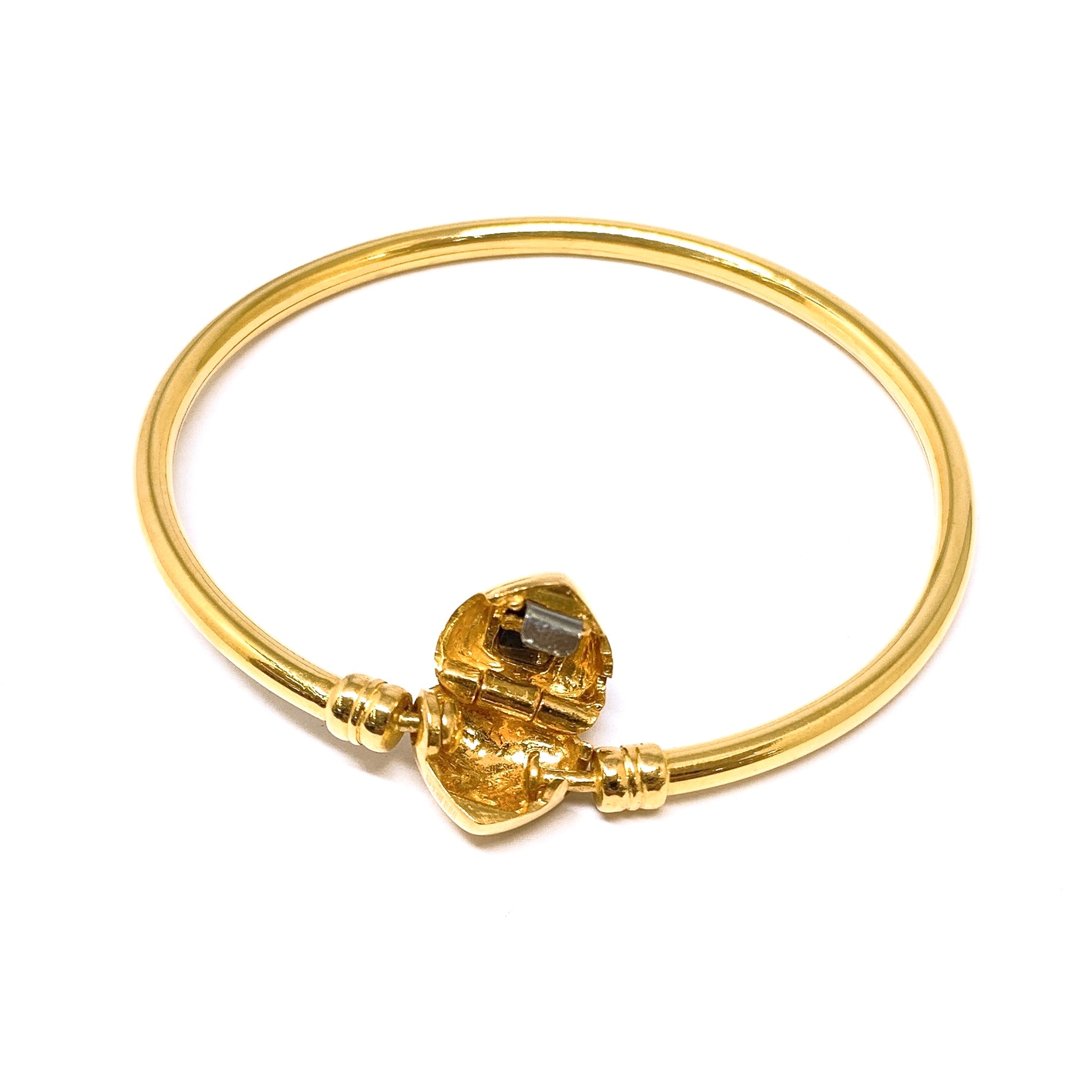 A sweet bangle any charm collector will love! This polished bangle comes with a heart shape clasp that also looks like a charm, a perfect piece to start your charm collecting journey.