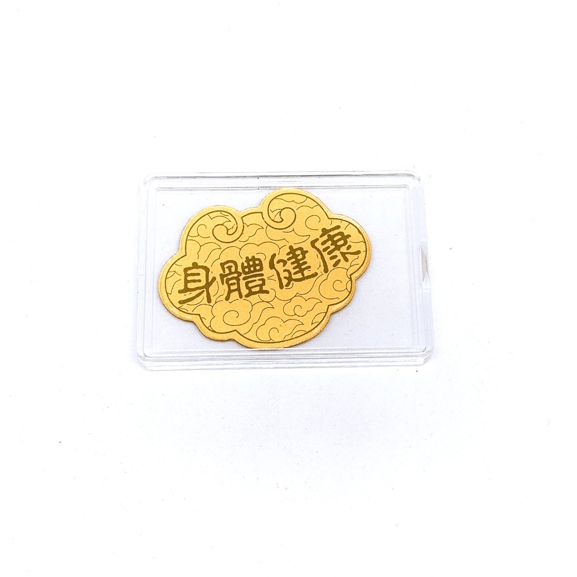 A longevity lock shaped pure gold sticker that reads " 身体健康“ which means great health. Convey your wishes for your loved ones with an affordable piece of gold sticker that they can carry around and be reminded of your blessing wherever they go.