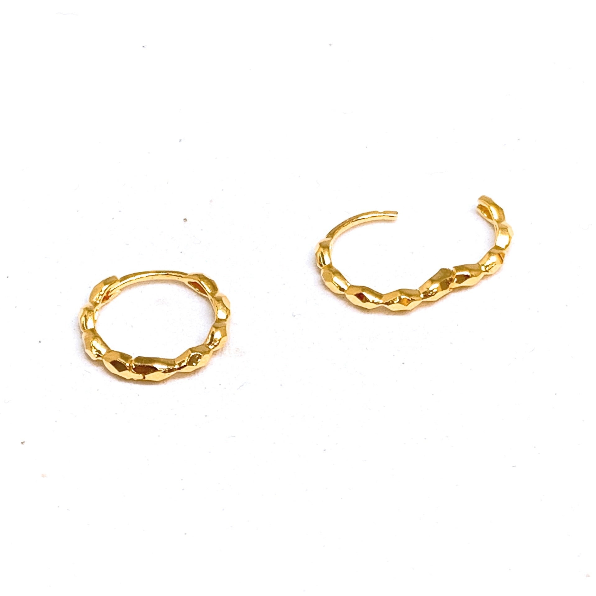 This dainty huggies style hoop earrings features oval shaped beads with cutting that hugs your earlobes and offers a simple yet fashionable look that effortlessly complements any ensemble. It's click-type closure makes it an easy-to-wear design that also provides security.