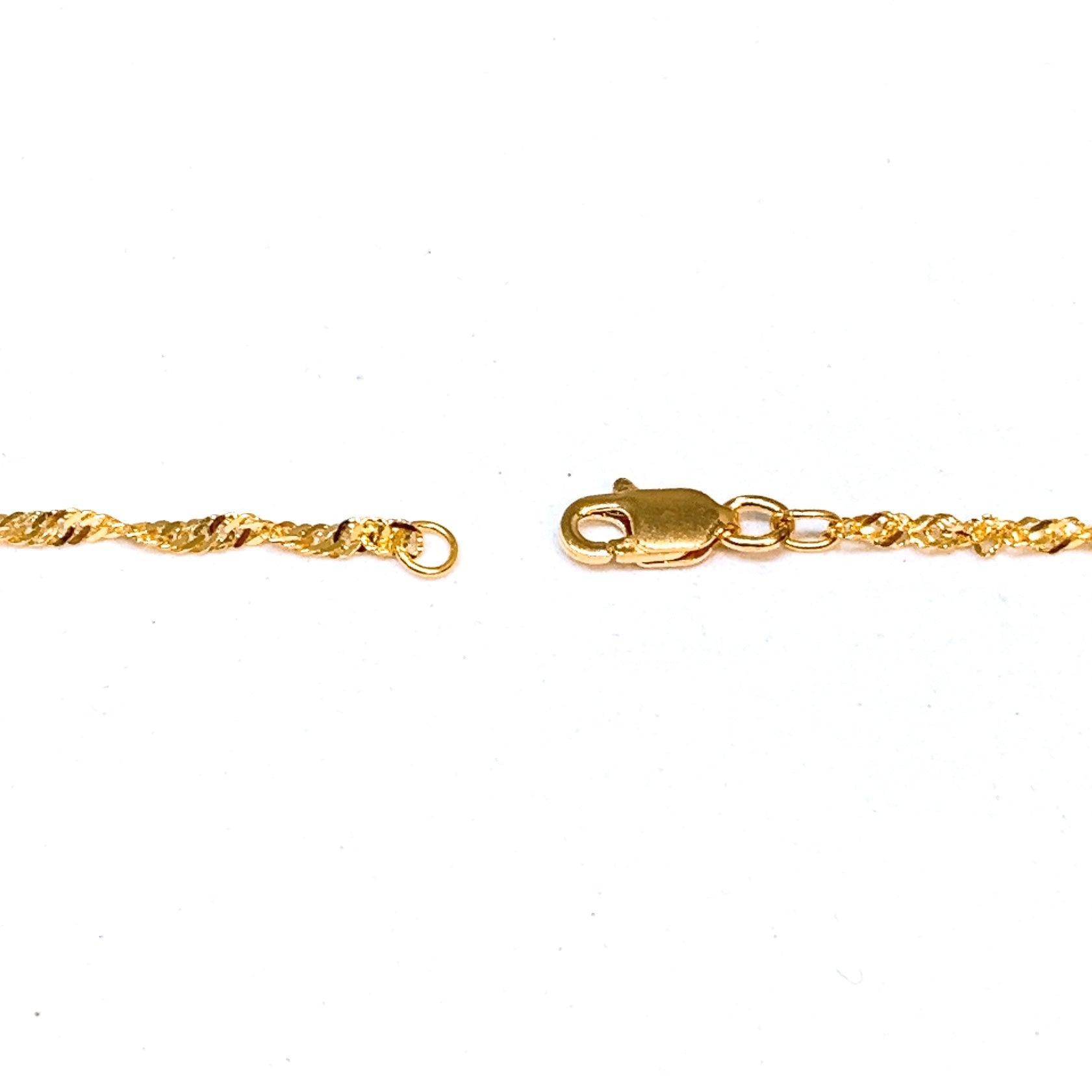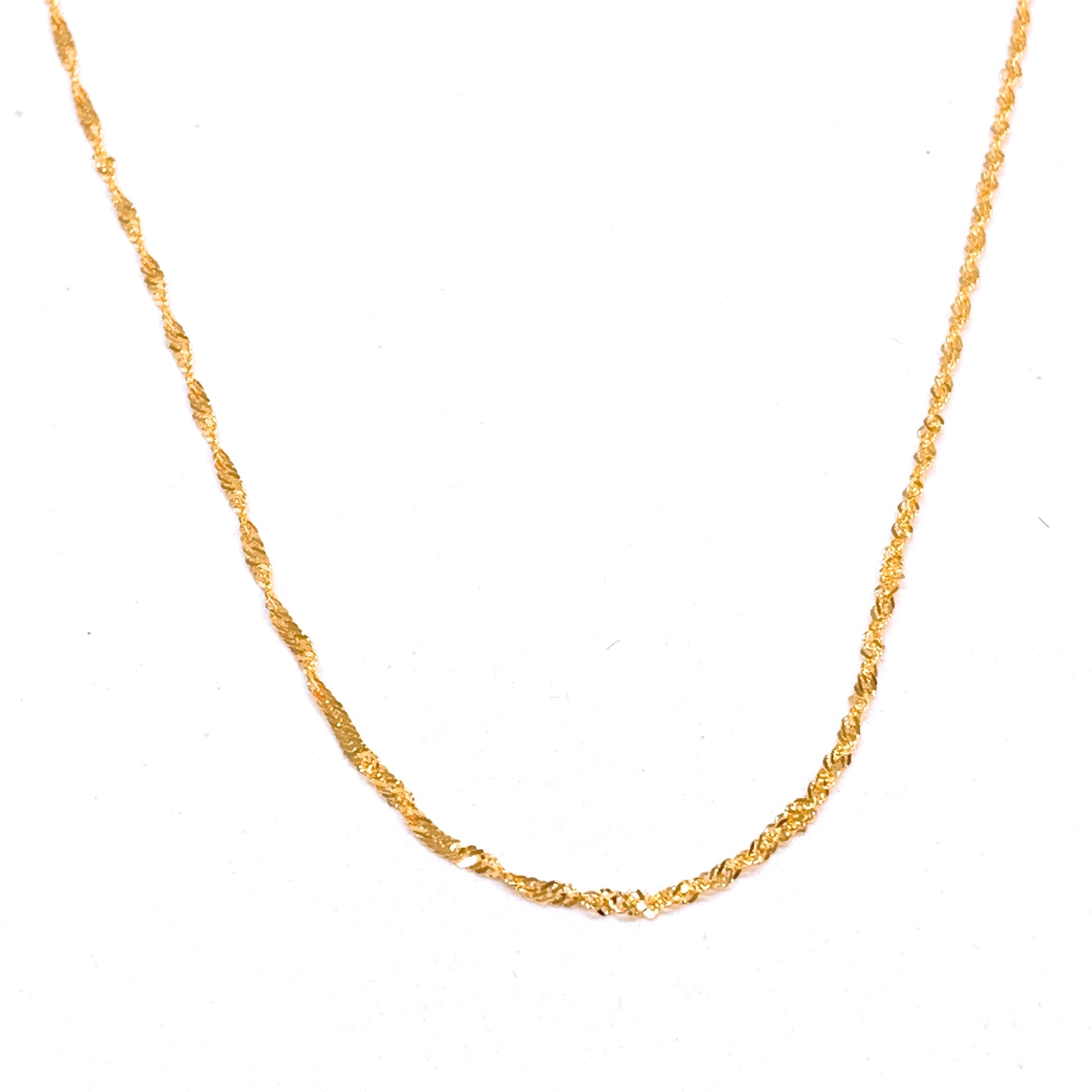 This 916 gold ripple chain features a twisted design that is extra shimmery and is available in various length, weight and thickness.
