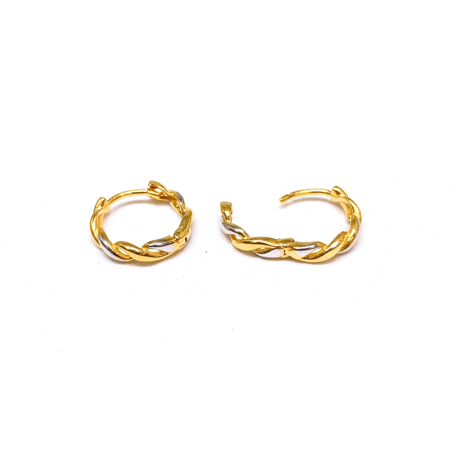 Material: 916/22k Gold ( Hallmarked on needle of hoops ), white gold plating